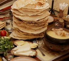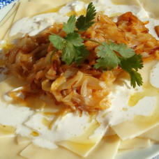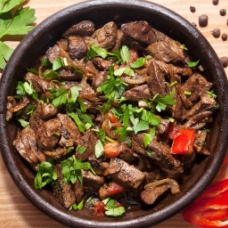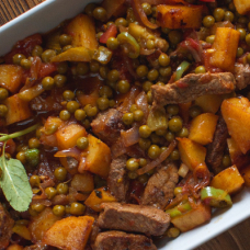 Գառան միս, խորոված մրգեր, սոխ